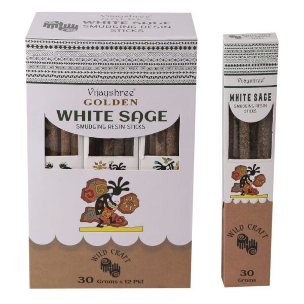 Experience the essence of tradition with our Golden White Sage Smudging Resin Sticks. Crafted from pure White Sage resin, these solid sticks exude a natural, earthy elegance. Their warm, herbaceous aroma is distinctive and grounding, offering a slower, more profound burn compared to loose resin or leaf.