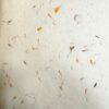 Bring a soft botanical feel to your gifts and craft projects with this handmade Lokta paper featuring mixed floral and cotton inclusions. The natural cream base is scattered with delicate petals and fibres in muted tones, creating a gentle, textured finish. Handcrafted in Nepal using traditional papermaking methods, this Lokta sheet has a lightly uneven surface with visible cotton fibres and small dried floral fragments pressed into the paper. Subtle shades of soft orange, grey and natural tones give it a calm, organic character.