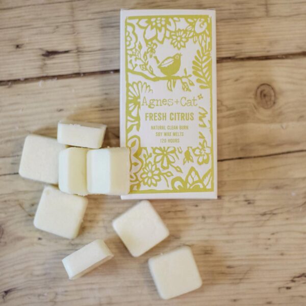 The melts are individually wrapped and presented in Agnes + Cat’s illustrated packaging, making them simple to store and ideal for gifting. The soy wax base offers a clean burn and a softer, more natural scent throw compared to paraffin wax.