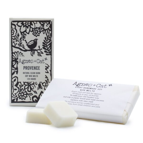 Bring a sense of calm into your home with the Provence wax melts from Agnes + Cat. Soft, herbaceous, and gently floral, this scent is inspired by the relaxed rhythm of southern French landscapes and slow, sun-warmed days. Each box contains eight handmade soy wax melts, hand-poured in Sheffield using natural soy wax and high-quality fragrance oils. Designed for use in a wax burner, each melt provides up to 15 hours of fragrance, releasing scent gradually and evenly without overpowering the space.