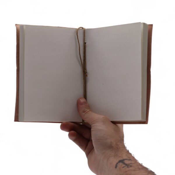 These handcrafted leather notebooks feature mystical embossed designs like the Tree of Life, Pentagram, Om, and Triple Moon, perfect for spiritual writing, sketching, or daily journaling. Each one is unique, tied with a simple cord and filled with rustic blank pages. Made from genuine leather and natural paper, the notebooks come in a practical display case of eight assorted designs. The blank pages have a natural, textured finish that gives every note a handmade feel. Ideal for gifting, journaling, or as an addition to any spiritual or artisan stationery collection.