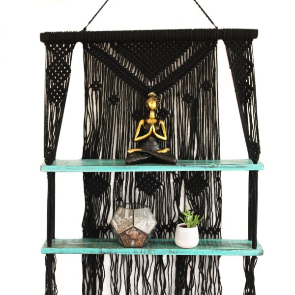 Decorative and practical, these Handmade Macrame Hanging Shelves create extra space to beautifully display your favourite framed photos, collectibles, small plants, reed diffusers, towels, or any other small items. Ideal for enhancing the aesthetic of any room, these charming boho wall decor shelves can be placed in the bedroom, living room, office, or reception area, infusing an elegant and warm atmosphere into your space.