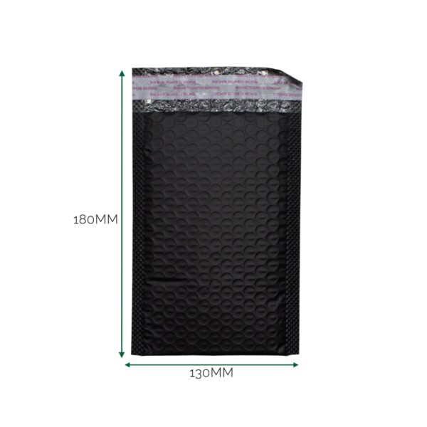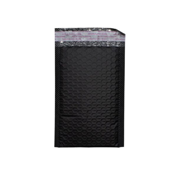 A compact padded mailing envelope made from durable black poly material, designed to provide superior protection for your items. The internal bubble lining ensures that your contents are shielded from impact, moisture, and dirt during transit, all while keeping your parcels lightweight.