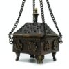 Enhance your space with a touch of spiritual serenity and cultural intrigue through this exquisite Brass Tibetan Burner – Eight Symbols Square Hanging Pot. This handcrafted piece showcases a square pot beautifully adorned with the Eight Auspicious Symbols, each representing good fortune, health, prosperity, longevity, peace, harmony, victory, and fulfilment. The burner elegantly hangs from a chain, allowing the smoke to cascade gently downwards, creating a mesmerizing and calming ambiance.