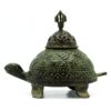 Add a touch of timeless beauty and cultural significance to any space with the Brass Verdigris Tibetan Turtle Incense Holder – Large. This handcrafted incense holder features a majestic turtle design, a symbol of longevity and wisdom in many cultures. The Verdigris finish gives the holder an aged, antique look, enhancing its unique appeal.