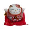 Soft in colour but full of character, this pink ceramic Money Cat features a gently moving paw that brings a sense of warmth and charm to any space. Seated on a red decorative cushion, it creates a cheerful focal point for shelves, desks, or entryways. Finished in glossy ceramic, the cat is decorated with traditional-style motifs, gold-toned details, and a small hanging bell that adds visual interest.