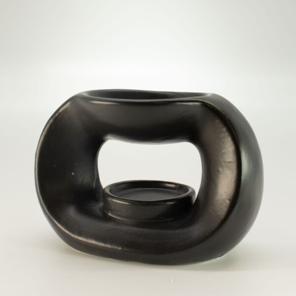 The top dish holds fragrance oils or wax melts, allowing scent to slowly release as the candle warms the ceramic. The matt black finish adds a sleek and minimalist character, making this burner a perfect match for modern, industrial, or monochrome interiors. Its sculptural form also makes it an attractive decorative piece even when not in use.