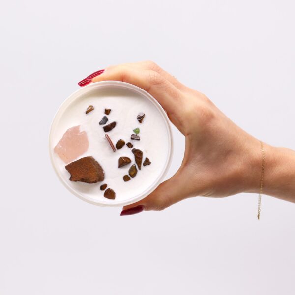 Light this candle to create a warm and inviting atmosphere that fuels your creative spark. Let the fragrance of “Invoking Dreams” inspire your imagination, while the energy of Tiger Eye and Rose Quartz crystals nurtures your emotional well-being.