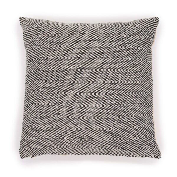 Transform your living space with the exquisite charm of traditional Indian design through this stunning cushion cover. Crafted from high-quality cotton, it features a timeless herringbone pattern in a fine grey hue, making it a striking addition to your home décor.