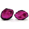 This beautiful artificially coloured calcite geode in black rock with dark red and pink hues reveals its stunning colours once opened, showcasing the magnificent crystals formed within. Geodes are hollow stones where unique crystal formations develop over time through a lengthy crystallisation process. Each geode is absolutely one-of-a-kind, making it a captivating addition to your collection.