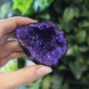 This beautiful artificially coloured Calcite Geode – Black Rock – Turquoise / Purple offers a stunning display of colour once opened, revealing magnificent crystals formed within. Geodes are hollow stones that encapsulate these unique crystal formations, each one a result of a lengthy crystallisation process.
