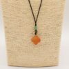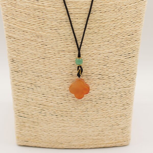 Bring a soft pop of colour and meaning to your everyday style with this Red Jade Clover pendant. Carved from real gemstone and shaped into a classic four-leaf clover, it sits on an adjustable cord for easy, comfortable wear from day to night. This necklace combines natural stone character with a simple, wearable design. The warm red-orange tones and smooth, polished finish give each piece a unique look, while the clover shape adds a subtle symbol of luck and positive energy.