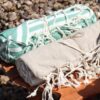 With summer on the horizon and cooler evenings to consider, this Pareo is perfectly sized for versatile use. Each piece is beautifully wrapped with jute twine and comes with an elegant label, embodying a touch of artisanal charm. Its lightweight design ensures portability, while its fast-drying properties make it an ideal companion for your adventures.