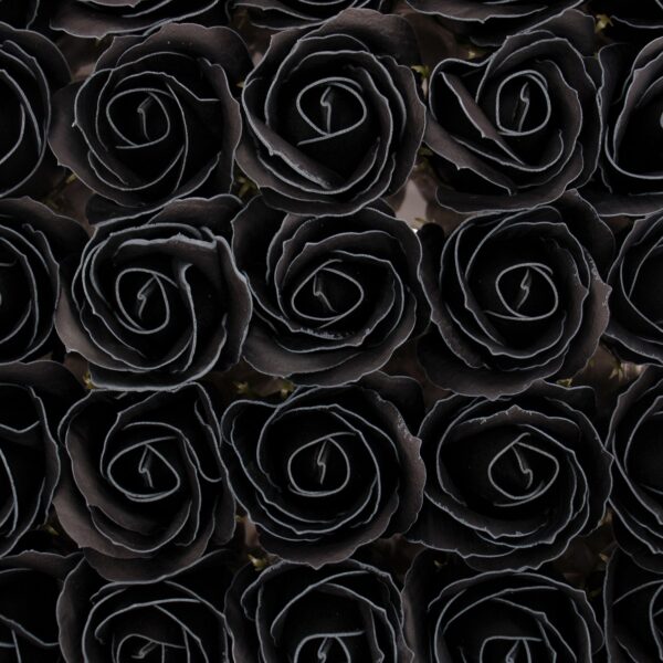 Indulge in the exquisite beauty of our handcrafted soap flowers, designed to elevate your bathing experience. Each rose, elegantly crafted in a striking black hue with a crisp white rim, brings a touch of sophistication and artistry to any setting.