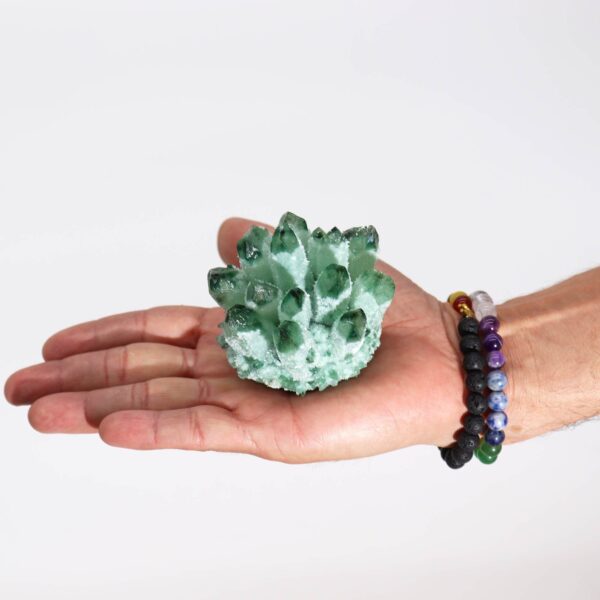 Bring the serene energy of green quartz into your life. This cluster not only serves as a decorative piece but also promotes a sense of calm and balance, making it an ideal addition to your personal sanctuary.