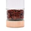 Our bottles are made of high-quality borosilicate glass, which is known for its durability and resistance to thermal shock. The infuser can be easily removed for cleaning or when you wish to use the bottle for a drink other than tea. The stones are housed in a separate chamber, ensuring they do not come into contact with the liquid. Simply unscrew the bottom cap to empty the chamber, add other stones, or replace them with a different type. It is believed that the gemstones will infuse their energy into the tea, creating a truly unique and special experience.