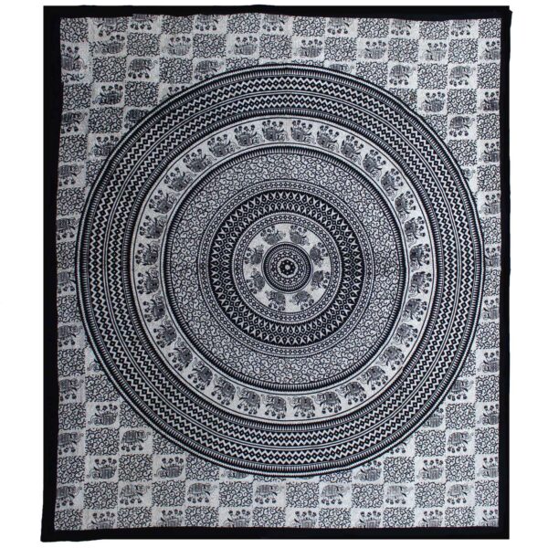Double Cotton Bedspread + Wall Hanging – Mono – Elephant Mandala