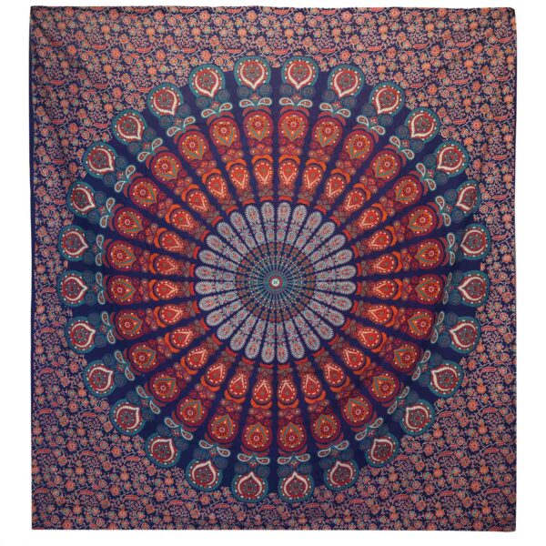 Transform your space with the exquisite Double Cotton Bedspread + Wall Hanging featuring a stunning Peacock Mandala design in vibrant blue hues. This versatile piece is designed to elevate any room, whether draped over your bed or hung elegantly on the wall.