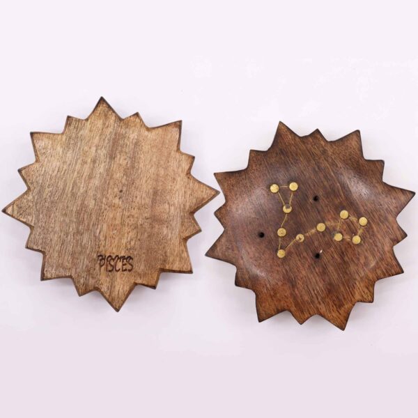 The sun-shaped design adds a touch of brilliance, symbolising the vitality and energy associated with the astrological elements, while the intricate engravings showcase a commitment to craftsmanship and detail. Crafted from high-quality materials, these burners not only serve as functional pieces but also stand out as works of art. The brass covering adds a layer of sophistication, creating a beautiful contrast with the sun-shaped base and engraved zodiac sign.