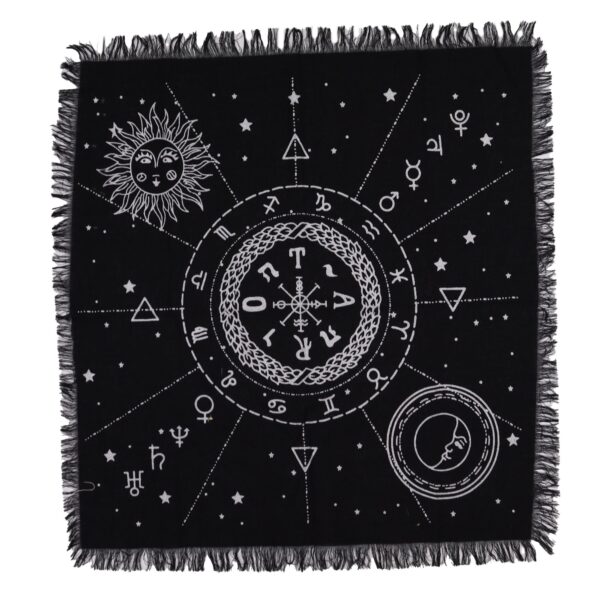 Esoteric Fringed Altar Cloth – Moon & Sun Chart
