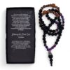 The contrasting tones of black and amethyst evoke balance – between darkness and enlightenment, fear and wisdom. Each piece comes beautifully gift-boxed with an inner card explaining its meaning, making it more than jewellery – a reminder that healing begins when we acknowledge our hidden depths and turn them into strength.