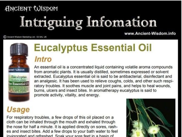 Experience the refreshing and invigorating essence of Eucalyptus Essential Oil, an exquisite addition to your wellness routine. Sourced from the finest eucalyptus leaves, this pure essential oil is renowned for its numerous benefits, providing a natural boost to both your body and mind.