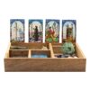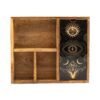 This tarot storage box is designed for readers who work with a full set of tools and want everything organised in one place. Crafted from natural mango wood, it features a carefully planned internal layout with multiple compartments to separate tarot decks, crystals, pendulums, incense, smudge sticks, and small ritual items. The divided interior allows each element of a reading to have its own space, reducing clutter and making setup quicker and more intentional. An integrated upright card display lets selected cards remain visible throughout a reading, adding focus and visual structure to the experience.