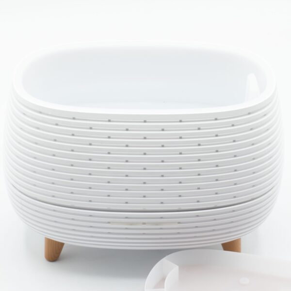 A modern aroma diffuser with a softly ribbed design and wood-effect top, this exquisite piece is crafted to enhance your space with a calm, contemporary atmosphere while gently scenting the room with a fine mist. Using ultrasonic technology, the diffuser produces a cool mist suitable for essential oils, elevating your relaxation experience.