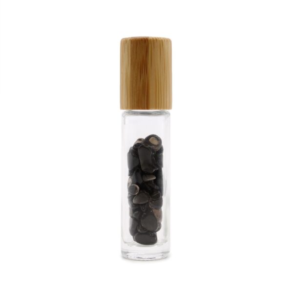 Gemstone Essential Oil Roller Bottle – Black Tourmaline – Wooden Cap