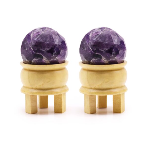 The Amethyst Faceted Healing Ball is a stunning gemstone that promotes peace and clarity, making it a wonderful addition to your space. Accompanied by a beautifully crafted light brown wooden stand, this exquisite piece not only enhances your décor but also serves as a powerful tool for meditation and spiritual growth. Its deep purple hue aids in creating an atmosphere of serenity, allowing you to connect with your inner self.