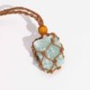A distinctive feature of this product is the intricate macramé wrap, which securely holds the gemstone while adding a touch of bohemian elegance. This detail enhances the cord’s visual interest and provides a secure setting for a variety of crystal sizes and shapes. The inclusion of a natural wooden bead introduces an organic element, balancing the cord’s earthy tone with a hint of warmth.