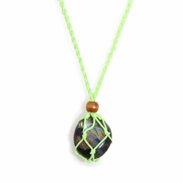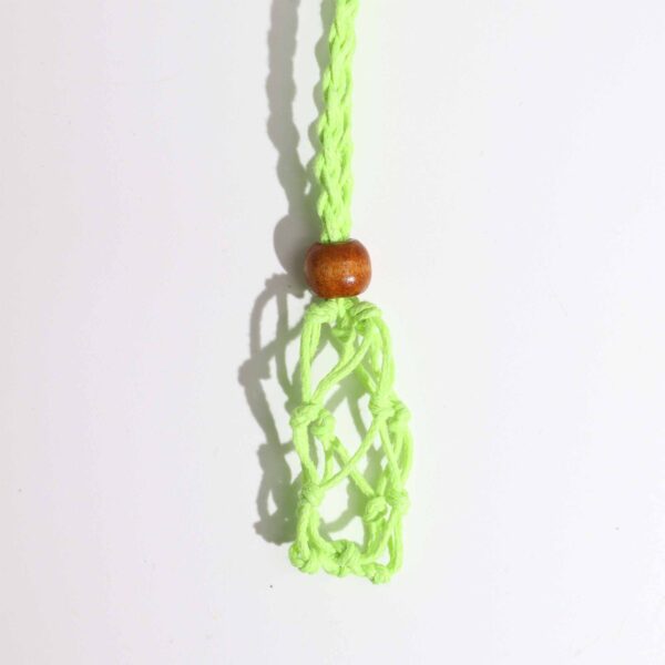 This green cord is a versatile and eco-friendly option for your jewellery designs. The adjustable length ensures a perfect fit for any wearer, accommodating various necklines and personal preferences. The cord’s fresh green hue complements a wide range of gemstone colours, from vibrant to muted. The intricate macrame netting securely holds the crystal, creating a unique and eye-catching display.