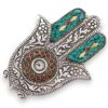 Measuring 13×5.5 cm, this incense holder is the perfect size for smaller incense sticks. Featuring a rich green finish, this holder showcases the iconic Hamsa design, which symbolises protection and good fortune. Its elegant aesthetic makes it a wonderful addition to meditation rooms, home décor, or spiritual gift collections.