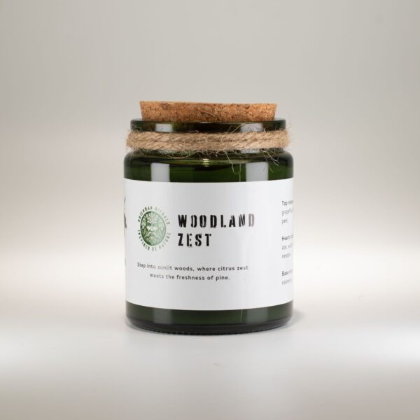 Poured into a green glass jar with a cork lid, this candle combines earthy presentation with everyday practicality. The scent blends bright citrus zest with green, forest-style freshness, making it ideal for living spaces, bedrooms, or quiet evening moments.