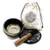Experience the perfect harmony of artistry and sound with the Hand Beaten & Engraved Singing Bowl Gift Set, a charming addition to your collection. Crafted with meticulous precision and adorned with intricate designs, this set comprises a 14cm singing bowl, a mallet, a cushion, and a pouch. Thoughtfully curated, it provides a holistic and spiritually enriching experience, making it an excellent choice for those seeking unique and meaningful products.