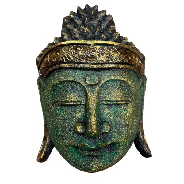 Looking to cater to the growing demand for spiritual and mindful home décor? This captivating Buddha Head in a Green Shine Finish, handcrafted by skilled artisans in Indonesia, is a guaranteed conversation starter and a perfect addition to any space. The mesmerizing green shine finish adds a touch of serenity and depth, while the compact size (25cm) allows for versatile placement on walls, tabletops, shelves, or meditation space vignettes.