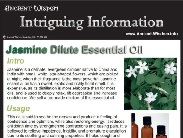 Indulge in the enchanting aroma of Jasmine Dilute Essential Oil, a true delight for the senses. This exquisite oil captures the essence of jasmine flowers, renowned for their sweet, rich fragrance that promotes feelings of relaxation and calm.