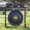 Each gong is paired with a sturdy, beautifully carved wooden stand, transforming it into a captivating piece of art that enhances any setting. Handmade in Bali, this gong is not only musical and mystical but also serves as a stunning decorative feature.