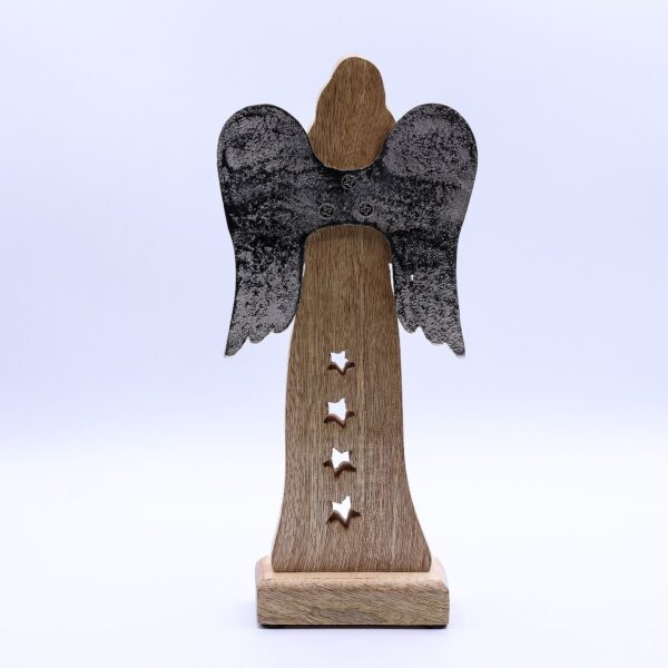 Hand-carved from mango wood, this 30cm angel holds a golden star close to its heart, symbolising hope, peace, and light. With antique-style metal wings, a white enamel robe, and delicate star cut-outs, it’s an elegant blend of tradition and charm. Made in India, the mix of natural wood grain, smooth enamel, and shimmering accents gives this piece a timeless beauty. Whether gifted to a loved one or displayed in your own home, it’s a meaningful decoration for Christmas, spiritual reflection, or year-round inspiration.