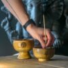 Elevate your space with the exquisite Lrg Ritual Bowl Incense Cone Holder, masterfully crafted to bring a touch of serenity and elegance to your environment. This stunning piece, measuring 11×6 cm, features a beautiful Om design, symbolising peace and unity.