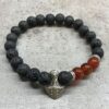 Embrace the allure of nature with this stunning Lava Stone Bracelet featuring an exquisite Axe-head Carnelian. Crafted from dark, porous beads, this bracelet not only adds depth to your accessory collection but also serves as a stylish statement piece. Wearing multiple bracelets together is currently in vogue, so consider stacking three or four for an eye-catching effect.