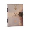 A stunning leather notebook with a celestial touch, featuring a moon phase design, perfect for spiritual individuals.