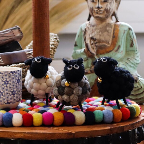 Bring a dash of charm to any setting with this delightful Little Felt Sheep in pristine white. Lovingly crafted from natural felt, this handmade sheep features a soft and fluffy appearance with a cosy, textured design. Its bright golden bell collar adds a playful touch, making it a standout piece for any décor. This felt sheep is lightweight, eco-friendly, and packed with personality.