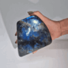 A captivating masterpiece of nature, this substantial Madagascar Labradorite statement stone is a true showstopper. Weighing approximately 900-1100 grams and measuring 140-170mm, this unique piece showcases the mesmerising play of colours that Labradorite is renowned for. Shimmering with iridescent hues of blue, green, and gold, the stone’s surface comes alive with a magical play of light. Each movement reveals a new spectrum of colour, creating a truly enchanting display.