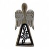 Hand-carved from mango wood and finished in a soft whitewash, this elegant angel stands 18cm tall and features a striking iron holly cut-out in its skirt. A beautiful mix of rustic wood and dark metal detail makes it a unique piece for gifting or decorating your home. Made in India by skilled artisans, the combination of warm whitewash and contrasting iron design creates a timeless look that’s both festive and versatile.