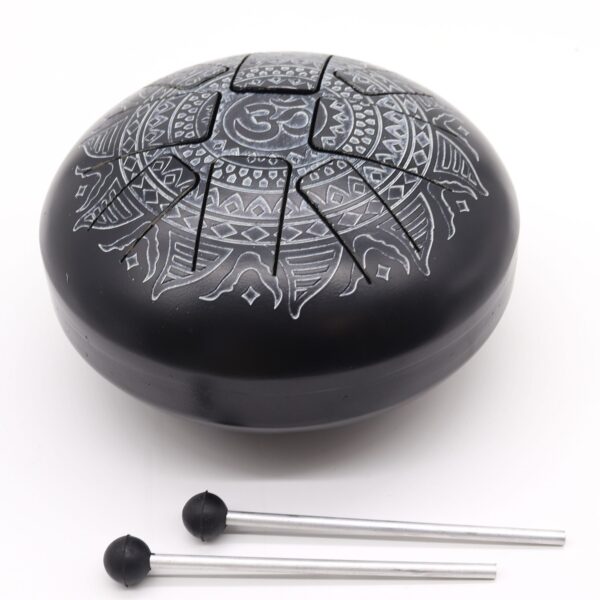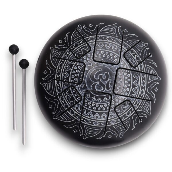 Experience the enchanting sound of our Med Hapi Drum, beautifully engraved with an Om Mandala design. Crafted with meticulous attention to detail, this drum not only serves as a musical instrument but also as a stunning decorative piece for your home.