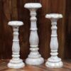 These romantic candlesticks are made from sustainable Albesia wood, hand-carved into ornate shapes that are ideal for holding Church Candles. Their unique craftsmanship and attention to detail make them a stunning addition to any room.