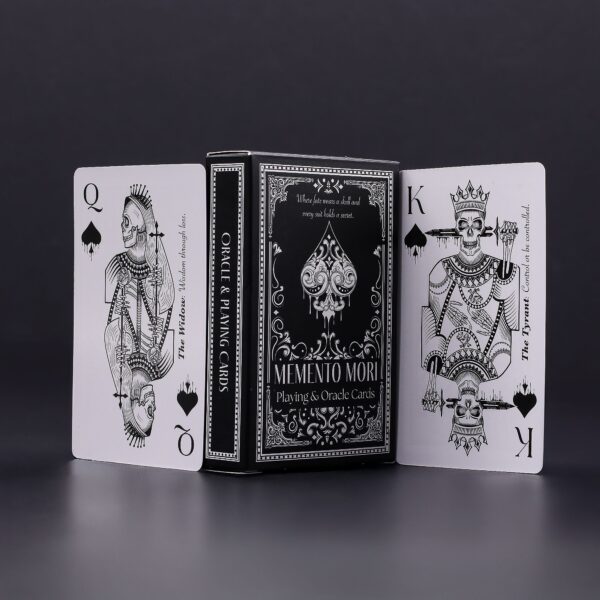 Step into a world where every hand tells a story and every card hides a secret. The Memento Mori Playing & Oracle Cards blend the structure of a classic 54-card deck with darkly elegant, symbolic artwork inspired by the theme of mortality and fate. Each card features skeletal figures, dripping suits, and intricate gothic designs that transform a simple game into an immersive experience.