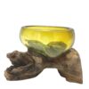 Each bowl is uniquely created, ensuring that you possess a one-of-a-kind item that reflects both craftsmanship and character. The molten glass captures light beautifully, while the wooden base adds warmth, making it a versatile piece for any space.