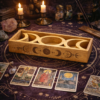 Create a dedicated space for your tarot readings with this Moon Phase Tarot Tray. Designed with a carved lunar phase pattern, it adds a calm, mystical touch while keeping your cards and tools neatly organised. The built-in card holder lets you display your chosen cards during readings, making it both decorative and practical.